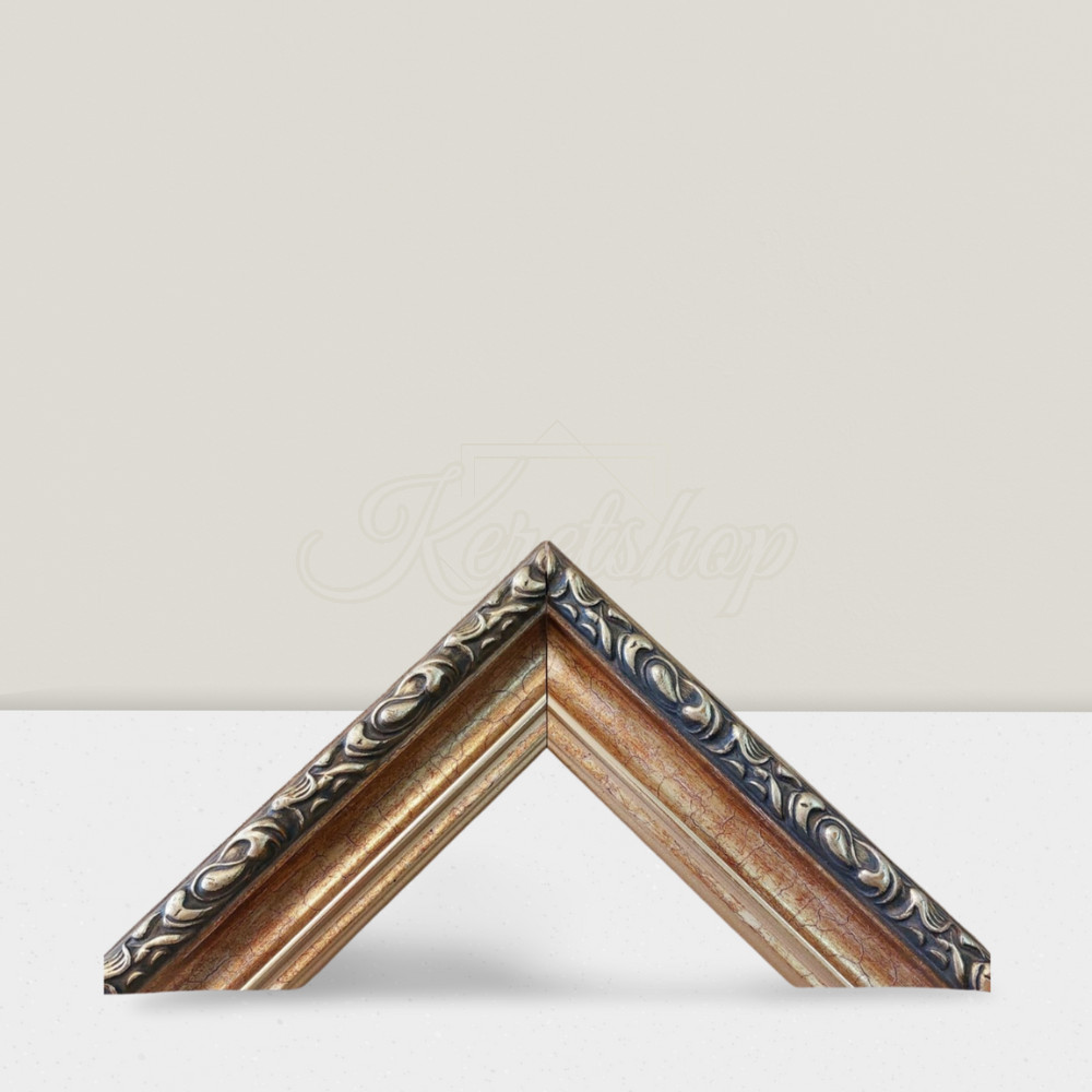 6 cm széles, repedezett -antikolt ,arany színű, díszes, klasszikus forma.